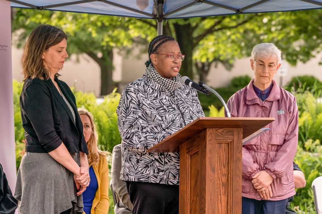 On June 6, 2022 at Veterans Park, the Congregation of Sisters of St. Agnes led an ecumenical prayer vigil remembering victims of mass shootings.
