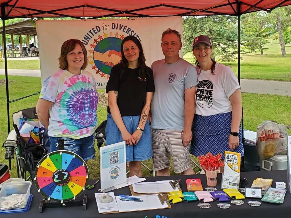 Board members and a key supporter at our booth for Pride Picnic at Lakeside Park on June 25th.